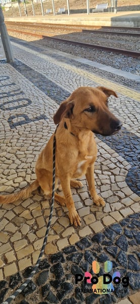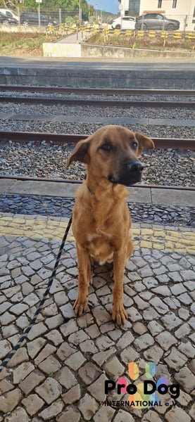 Bei Spaziergängen außerhalb des Shelters läuft er bereits schön an der Leine. Er war bereits in der Stadt Stadt spazieren und zeigte hier ein ruhiges, anmutiges Interesse an der Außenwelt.