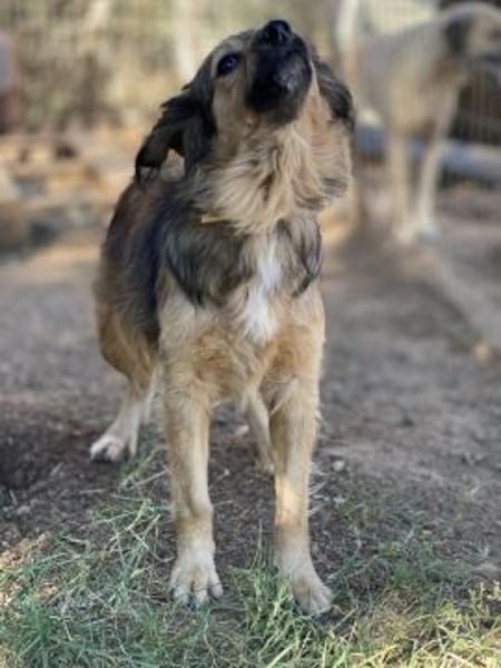Sie teilte sich eine zeitlang ihr Gehege mit ihren ehemaligen Leidensgenossen. Inzwischen haben Zelda und Nita zusammen ein Gehege bezogen. Zelda ist eine schüchterne Hündin, die wir aber mit Leckerlis locken konnten. Streicheln war ihr noch zu viel, aber wenn sie tolle Menschen mit Einfühlungsvermögen und viel Geduld findet, wird sich ihre Schüchternheit schnell legen.