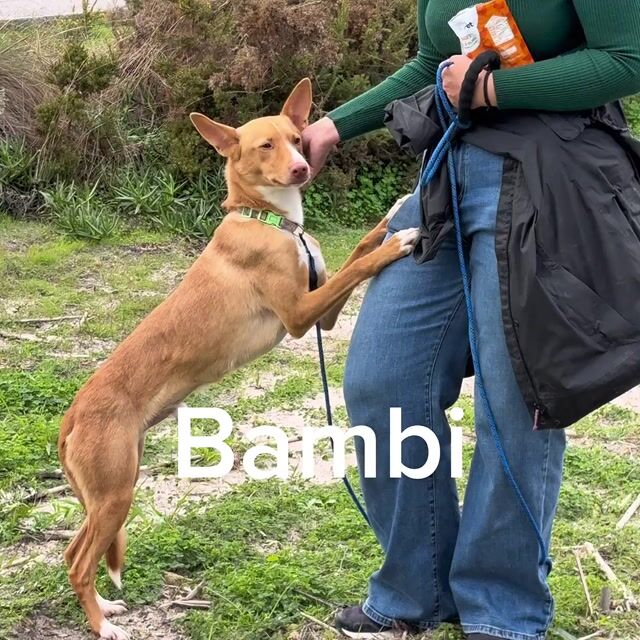 Dürfen wir Ihnen Bambi vorstellen – ein Mischlingsrüde, geboren 2023, mit einer Schulterhöhe von etwa 48 cm. Er wurde ausgesetzt gefunden und lebt derzeit in einem privaten Tierheim in Portugal.