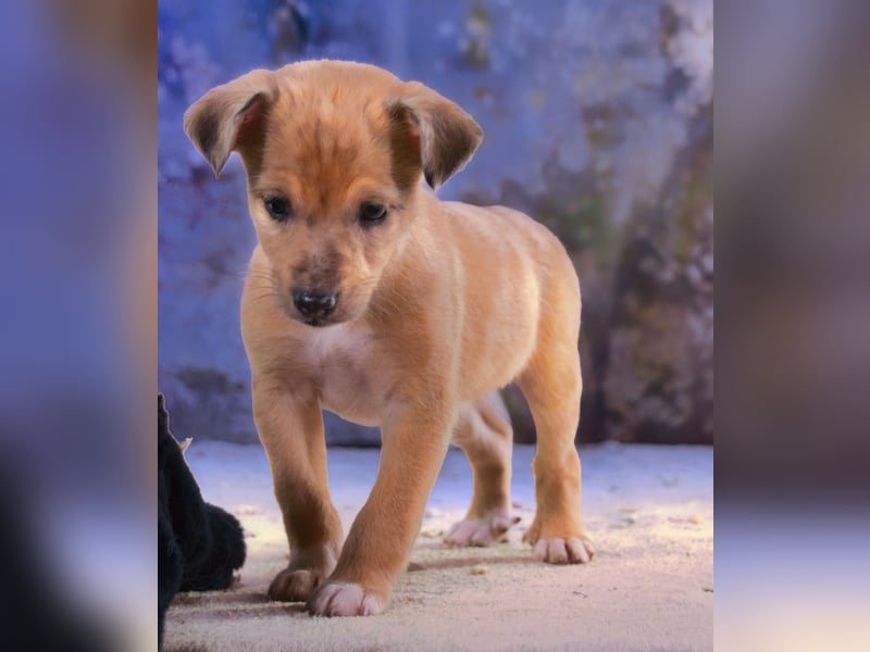 Dürfen wir Ihnen Penny vorstellen? Penny ist eine junge Mischlingshündin, geboren im November 2025. Ihre Mutter, eine mittelgroße Podengo-Mix-Hündin (45 cm), wurde in Portugal hochträchtig in ein kleines städtisches Tierheim gebracht, das leider keine passenden Möglichkeiten für so jungen Nachwuchs hatte. Wir wurden um Hilfe gebeten und die kleine Familie lebt nun auf einer privaten Pflegestelle in Portugal.