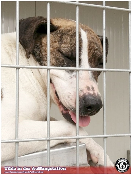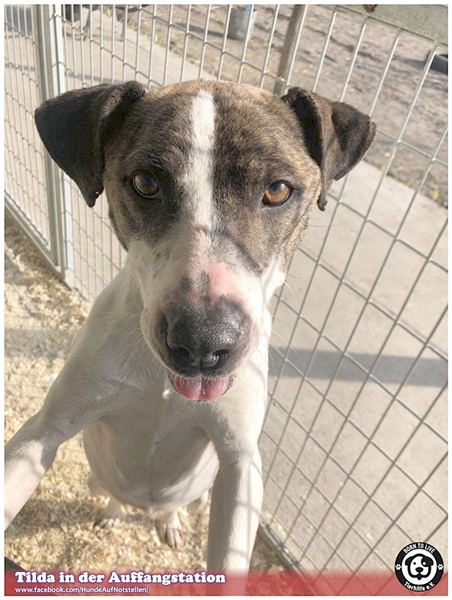 Mit ihren Artgenossen zeigt sich unsere Schönheit TILDA gut verträglich und kann daher auch gerne als Zweithund vermittelt werden.