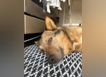 Sie ist an ihre Box gewöhnt, die sie als sicheren Rückzugsort nutzt.