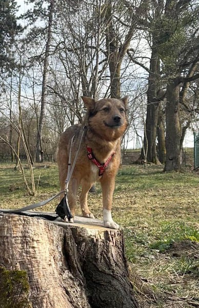 Beim Spazierengehen läuft Ema perfekt an der Leine. Sie zieht nicht, hält ein gutes Tempo und orientiert sich an ihrem Menschen, lässt sich von nichts ablenken. Freilauf wurde bisher nur in einem sicheren Umfeld wie einem großen, eingezäunten Hundepark getestet, wo sie zuverlässig in der Nähe bleibt und kein Interesse zeigt, wegzulaufen. Generell bevorzugt sie es, in der Nähe ihrer Bezugsperson zu bleiben.