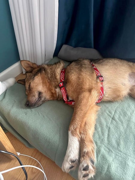 Im Haus zeigt sich Ema als ausgesprochen angenehme Mitbewohnerin. Sie lebt problemlos in einer Wohnung. Sie kann sich gut selbst beschäftigen, schläft viel und genießt ruhige Momente, während ihre Menschen ihrem Alltag nachgehen. Wenn sie alleine bleibt, braucht sie anfangs ein paar Minuten, um sich zu beruhigen, denn sie wimmert leise, kann aber nach kurzer Zeit entspannen und ruhig bleiben.