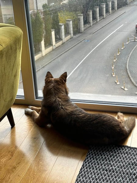 Im Haus zeigt sich Ema als ausgesprochen angenehme Mitbewohnerin. Sie lebt problemlos in einer Wohnung. Sie kann sich gut selbst beschäftigen, schläft viel und genießt ruhige Momente, während ihre Menschen ihrem Alltag nachgehen. Wenn sie alleine bleibt, braucht sie anfangs ein paar Minuten, um sich zu beruhigen, denn sie wimmert leise, kann aber nach kurzer Zeit entspannen und ruhig bleiben.