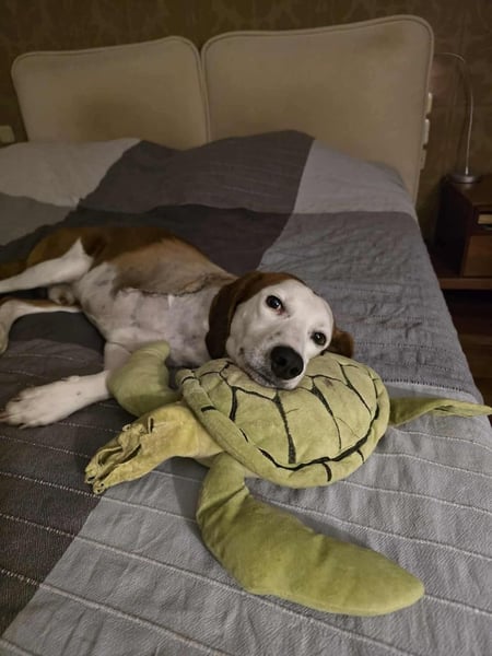 Nach seiner OP kam Arni in Pflege, wo er schnell auftaut. Er zeigt, wie sehr er sich nach Gesellschaft sehnt und Zuwendung genießt. Mit anderen Hunden versteht er sich hervorragend und sehr freundlich.