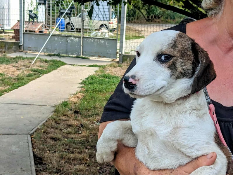 Viola wurde gemeinsam mit ihrem Bruder Valdo Ende Juli dieses Jahres auf einem Maisfeld in Mezőhék/ Ungarn gefunden. Ein Traktorfahrer entdeckte die beiden und verständigte das Tierheim. Glücklicherweise hat er die Welpen gleich gesichert und gewartet bis die ehrenamtliche Tierschützerin Ildi aus unserem Partnertierheim Koborka in Mezötúr/ Ungarn eintraf. So kam sie in dessen Obhut.