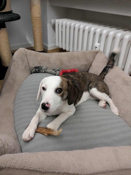 Als Viola am 05.10.2025 in Essen ankam, war sie zunächst eingeschüchtert und etwas ängstlich. Doch schnell siegte ihre Neugier: Heute erkundet sie interessiert ihre Umgebung und versteht sich gut mit anderen Hunden. Nur fremden Menschen gegenüber ist sie noch etwas misstrauisch. Hat Viola Vertrauen gefasst, zeigt sie sich anhänglich und verschmust. Fremde Menschen beschnüffelt sie, solange sie ignoriert wird – zu viel Aufmerksamkeit verunsichert sie. Autofahren mag sie noch nicht so gern, ist dafür aber zuverlässig stubenrein. Spaziergänge mit Hundegesellschaft liebt Viola besonders. Im Rudel ist sie fröhlich, ausgelassen und deutlich entspannter. Momentan kann sie noch nicht allein bleiben, da sie Angst hat, verlassen zu werden. Für Viola wünschen wir uns eine liebevolle, hundeerfahrene Familie – gerne mit einem souveränen Ersthund und größeren Kindern.