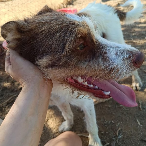 Enrique wurde von unseren Freunden der Arca Sevilla gerettet. Die Tierschützer hatten im Frühsommer 2025 den sehr jungen Hund entdeckt, der an einer Kette auf einem verlassenen Grundstück gehalten wurde. Enrique hatte keinen Kontakt zu Menschen oder anderen Hunden. Einmal in der Woche kam sein Besitzer, gab ihm einen Haufen Hundefutter und einen Eimer Wasser und ließ den verzweifelten Hund wieder allein. Die Tierschützer baten darum, dass der herzlose Halter Enrique bitte abgeben solle, und der Mann erklärte sich sofort bereit. Enrique sei viel zu schnell zu groß geworden, er gefalle ihm überhaupt nicht.