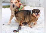 Die Freude über ihre Wiedervereinigung war riesig – seitdem sind Kika und Max unzertrennlich. Die beiden verbindet eine ganz besondere Freundschaft: Max betritt kein Haus, ohne dass Kika an seiner Seite ist, und behält sie stets im Blick, vor allem draußen. Sie teilen sich sogar ihr Bettchen, und beim Fressen zeigt Max seine sanfte Art, indem er geduldig wartet, bis Kika fertig ist, bevor er selbst beginnt. Beide Hunde sind ruhig, sehr liebenswert und sozial. Sie verstehen sich hervorragend mit Artgenossen und kommen auch mit Katzen gut zurecht. Nun sehnen sich Kika und Max nach einem gemeinsamen, liebevollen Für-Immer-Zuhause, in dem sie zusammenbleiben dürfen. Wie viele Hunde aus dem Tierschutz benötigen auch sie etwas Zeit, um anzukommen und in Ruhe an ihrem Hunde-1×1 zu arbeiten. Mit Geduld, Verständnis und Liebe werden sie sich jedoch zu treuen Begleitern entwickeln, die ihr neues Zuhause sehr zu schätzen wissen.