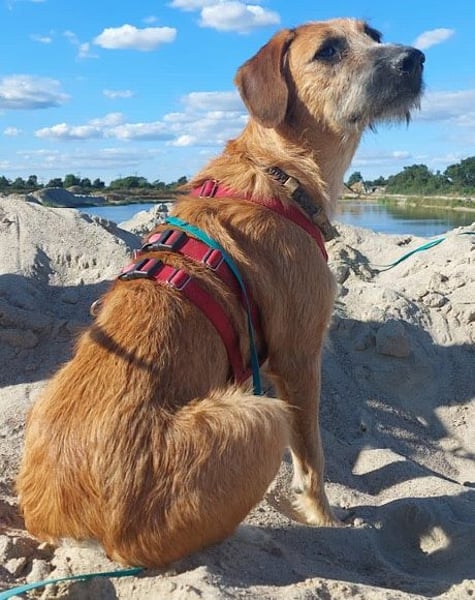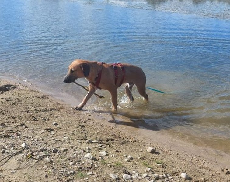 Das Alleinsein und Autofahren muss mit ihm weiter geübt werden, denn da zeigt er sich noch unsicher. Taro kam vor einiger Zeit als Angsthund auf seiner Pflegestelle an. Durch viel Zeit zum Ankommen und Verarbeiten ist er mittlerweile ein anderer Hund, mit noch so viel Potenzial und unglaublich viel Liebe! Draußen ist er mittlerweile nicht mehr so unsicher und übt jeden Tag fleißig, mit unbekannten Situationen klarzukommen. Auch einen Fluss hat Taro schon kennengelernt.