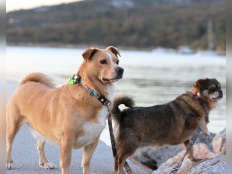 Die Freude über ihre Wiedervereinigung war riesig – seitdem sind Kika und Max unzertrennlich. Die beiden verbindet eine ganz besondere Freundschaft: Max betritt kein Haus, ohne dass Kika an seiner Seite ist, und behält sie stets im Blick, vor allem draußen. Sie teilen sich sogar ihr Bettchen, und beim Fressen zeigt Max seine sanfte Art, indem er geduldig wartet, bis Kika fertig ist, bevor er selbst beginnt. Beide Hunde sind ruhig, sehr liebenswert und sozial. Sie verstehen sich hervorragend mit Artgenossen und kommen auch mit Katzen gut zurecht. Nun sehnen sich Kika und Max nach einem gemeinsamen, liebevollen Für-Immer-Zuhause, in dem sie zusammenbleiben dürfen. Wie viele Hunde aus dem Tierschutz benötigen auch sie etwas Zeit, um anzukommen und in Ruhe an ihrem Hunde-1×1 zu arbeiten. Mit Geduld, Verständnis und Liebe werden sie sich jedoch zu treuen Begleitern entwickeln, die ihr neues Zuhause sehr zu schätzen wissen.