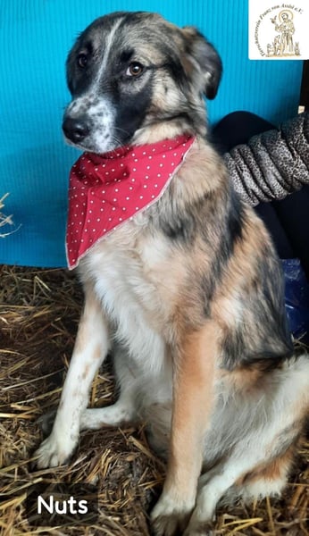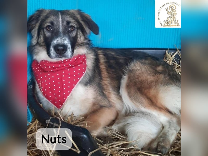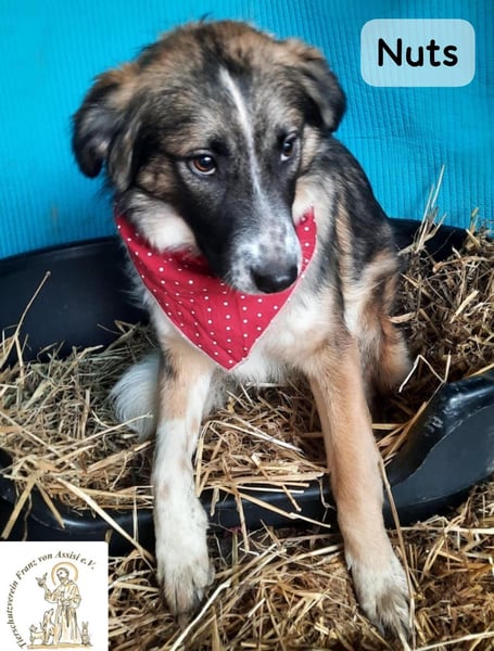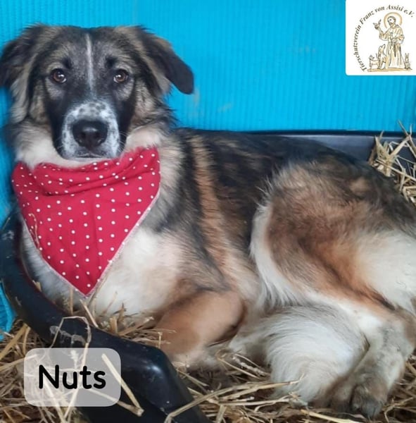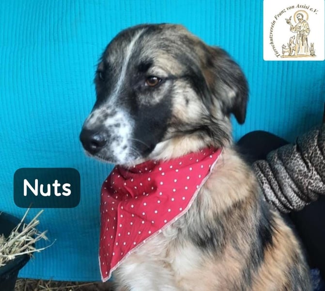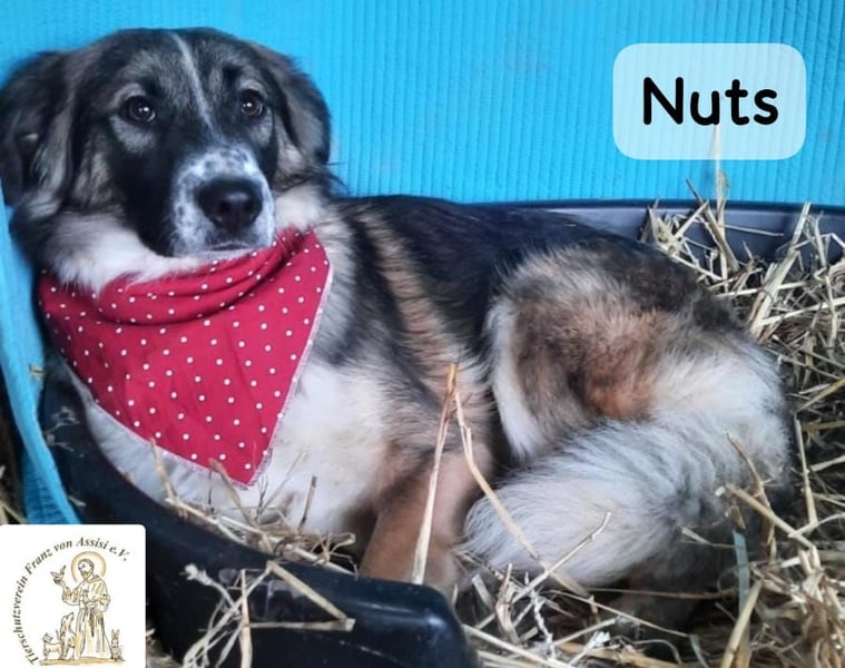 Gemeinsam mit ihrer Mama und ihren Geschwistern wurde sie als Welpe gefunden und in Sicherheit gebracht. Seitdem lebt sie in der Pension und kennt die Welt bisher nur in einem kleinen Ausschnitt. Ein Zuhause, Nähe im Alltag, all die vielen Eindrücke – für Nuts ist das alles noch neu.