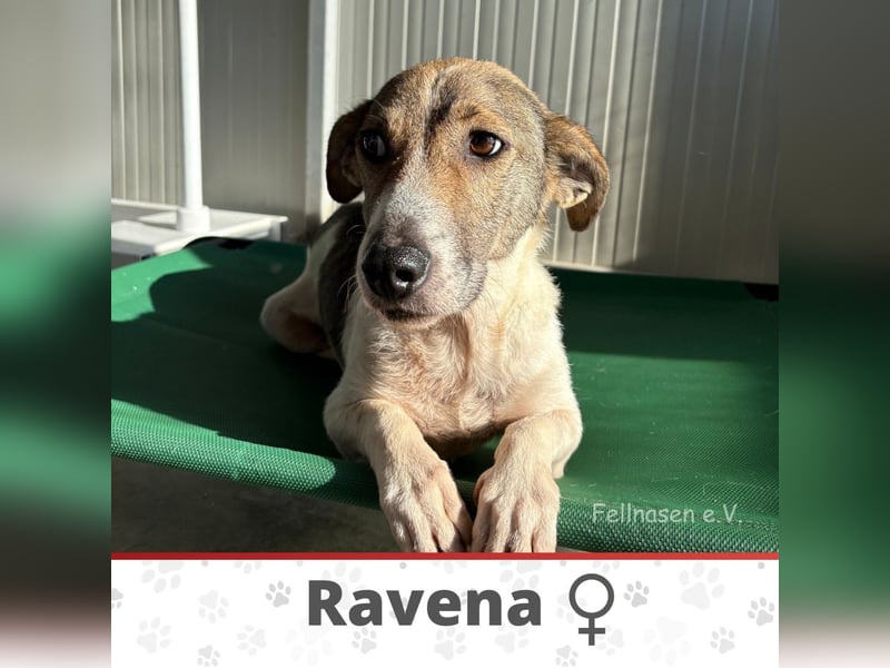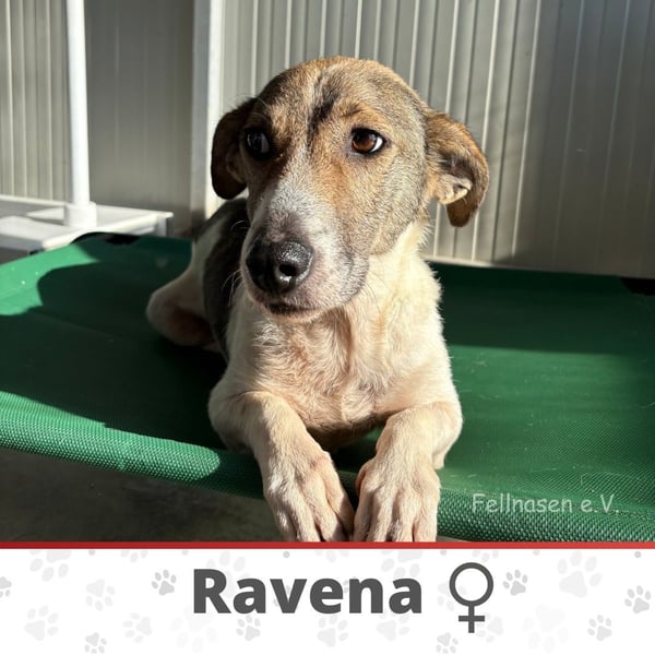 RAVENA ist eine unglaublich liebe, schlaue und dankbare Hündin. Sie hat auf der Straße zehn Welpen zur Welt gebracht und sich mit all ihrer Kraft um sie gekümmert – so sehr, dass sie selbst fast verhungert wäre.