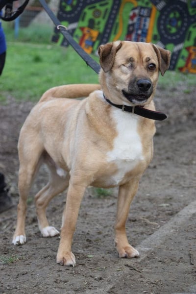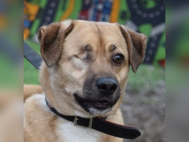 Popeye ist ein charmanter Hund, der als Junghund gemeinsam mit seiner „Freundin“ auf der Straße in der Nähe des Tierheims gefunden wurde. Leider verstarb die Hündin. Popeye musste aufgrund einer Verletzung sein rechtes Auge entfernt bekommen. Die Ursache dieser Verletzung ist unbekannt, aber er hat sich gut an seine neue Lebenssituation angepasst.