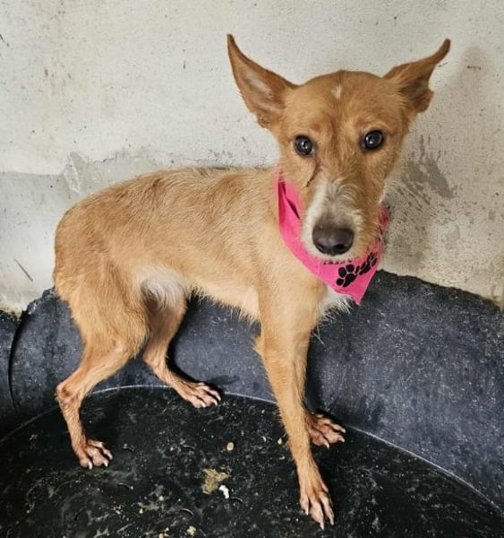 Die 46 cm große Hündin ist neu im Tierheim. Sie wurde von einem Jäger abgegeben, weil sie „nicht zum Jagen taugt“, für Toquinha vermutlich ein Glück, denn sie ist viel zu sensibel. Aktuell zeigt sie sich noch ängstlich, was nach ihren Erlebnissen kein Wunder ist. Dennoch ist sie stets lieb, sanft und absolut verträglich mit Artgenossen. Für Toquinha wünschen wir uns ein ruhiges, geduldiges Zuhause, in dem sie ankommen und Vertrauen fassen darf. Mit Zeit und Liebe wird sie zu einer treuen Begleiterin fürs Leben.