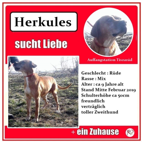 Herkules /Rüde/ ca 9 Jahre alt/ SH ca 50 cm /mittelgroß