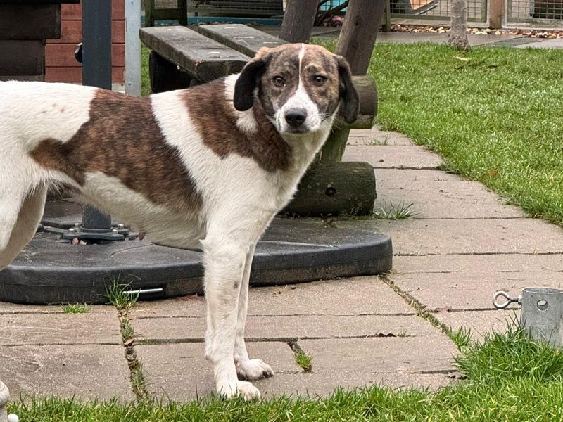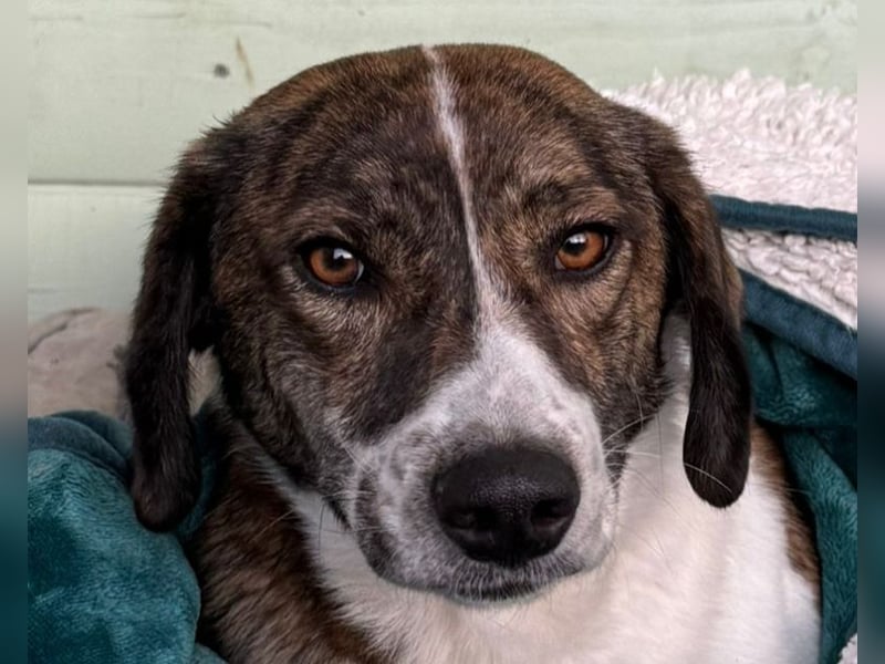 Nora kam Mitte Dezember zu uns nach Rösrath, denn für die hübsche Nora war es höchste Zeit dem riesigen Tierheim Bucov/Rumänien zu entkommen. Die Unpersönlichkeit, der Lärm und der dauerhafte Stress hatten die kleine Maus stark verunsichert. Auf ihrer Pflegestelle zeigte sie sich anfangs sehr vorsichtig und ließ sich zunächst nicht anfassen. Doch Nora hat schnell gelernt: Sie ist jetzt in Sicherheit. Ihr Blick ist oft noch skeptisch, aber Tag für Tag wächst ihr Vertrauen. Mittlerweile lässt sie sich gerne streicheln und genießt die Nähe ihrer Bezugspersonen. Behutsam und mit viel Geduld lässt sie sich inzwischen auch das Geschirr anlegen und läuft bereits ein paar Schritte an der Leine in ihrem vertrauten Umfeld – ein großer Erfolg, der zeigt, wie viel Potenzial in ihr steckt. Innerhalb von nur sechs Tagen hat sich Nora unglaublich entwickelt: Aus der anfänglichen kleinen „Schnappschildkröte“ ist eine sanftmütige, sensible Hündin geworden, die ihren Kopf vertrauensvoll auf den Schoß legt und sich ruhig streicheln lässt. Nun zeigt sich, was für eine liebevolle Seele in ihr wohnt. Hektik braucht Nora nicht. Sie wünscht sich ein ruhiges Zuhause, in dem sie in ihrem eigenen Tempo ankommen darf, ohne Druck, dafür mit Verständnis und Geduld. Bis zu ihrer Vermittlung wird sie sicher noch weitere Fortschritte machen – und bald bereit sein, ihre unsichere Vergangenheit hinter sich zu lassen und ihren Menschen von Herzen zu vertrauen.
