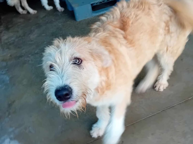 Hallo, mein Name ist Bubz, meine Geschwister und ich wurden als Welpen in einem Karton vor das Tierheim Help Labus gestellt. Als unsere lieben Engel morgens ans Tor kamen, stand dort ein Karton aus dem leise Jammertöne zu hören waren. Unsere Engel kennen diese Situation nur zu gut und wissen genau, was es bedeutet. Verwaiste, ausgesetze kleine Seelen, die dringend ihre Hilfe benötigen, um zu überleben. Die Frage ist nur, wie viele sind es diesmal. Beim Öffnen des Kartons schauten 14 kleine traurige, braune Äuglein erwartungsvoll aus der Tiefe des Kartons. Das waren ich und meine Geschwister. Weggenommen von unserer Mutter. Wir haben noch ihr Bellen und Weinen in den Ohren, wir hatten Hunger nach ihrer Milch und Sehnsucht nach ihrer Wärme und Liebe. Aber hier beginnt für uns ein neuer Lebensabschnitt. Wir müssen dem Zweibeiner sogar dankbar sein, dass er den Karton hier abgestellt hat und nicht irgendwo mitten im Wald, wo ihn keiner findet. Unsere Engel lieben uns wie unsere Mutter und päppelten uns erstmal auf. So ist die Zeit davongeeilt. Wir aber sind immer noch hier, keiner hat sich bis jetzt in uns verliebt. Das macht uns sehr traurig.