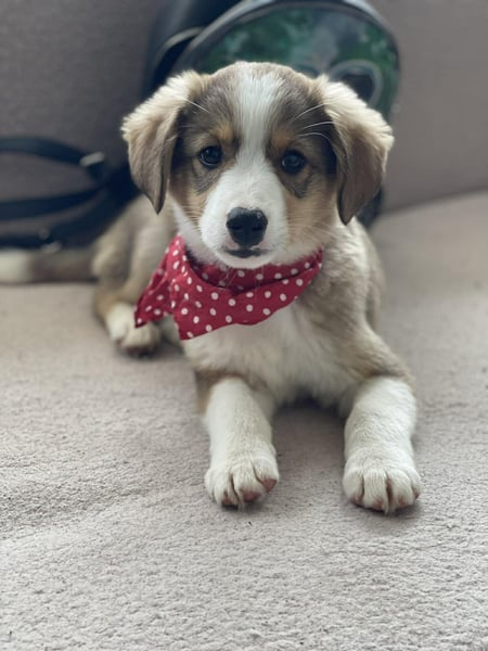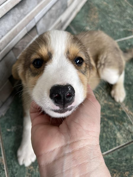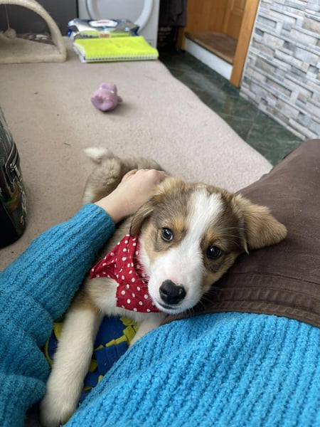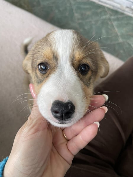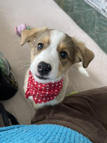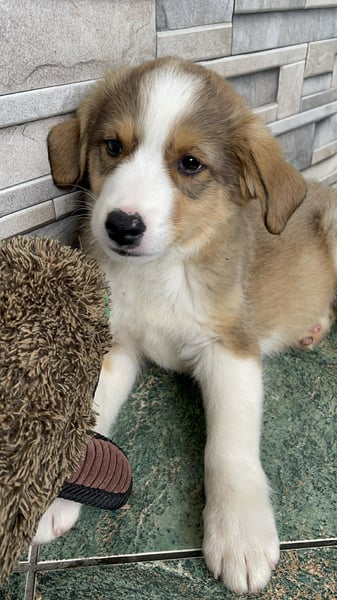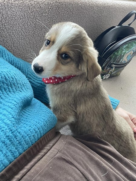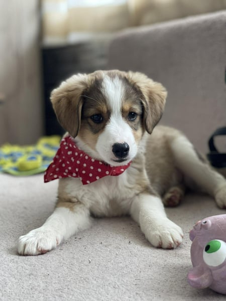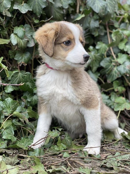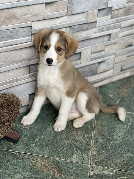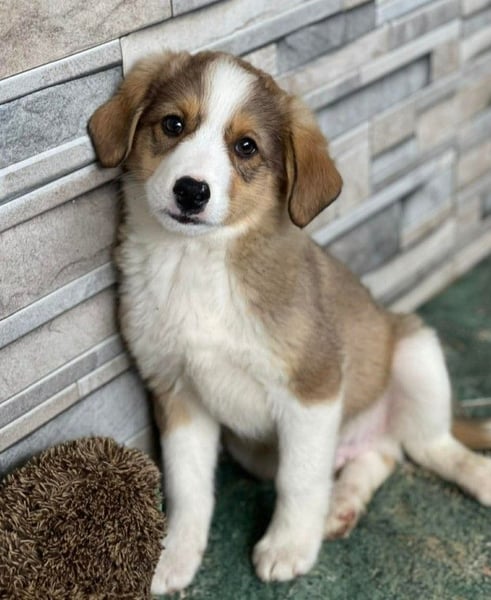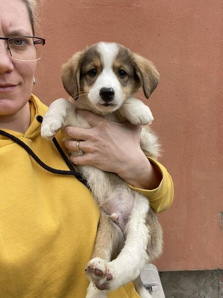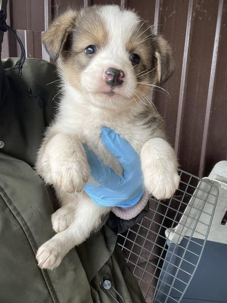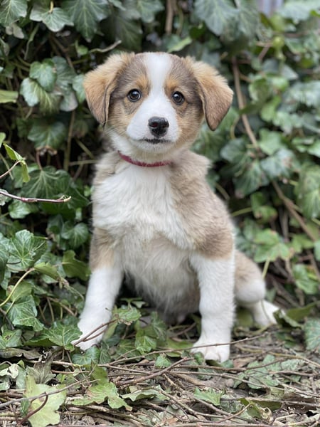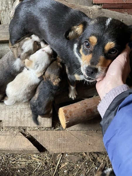 Peer's Mama Pixie hatte wahrscheinlich nie einen Besitzer. Im Januar 2026 erschien sie plötzlich an einem verlassenen Hof, sie war hochschwanger. Einige Tage später brachte sie dort sechs Welpen zur Welt und versteckte sie unter einem Stapel Brennholz.
