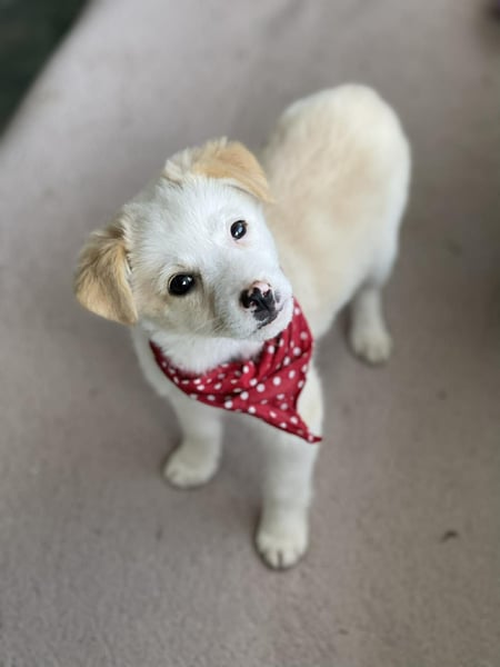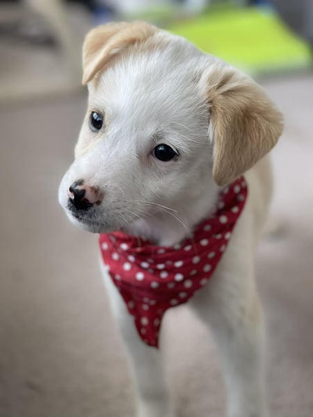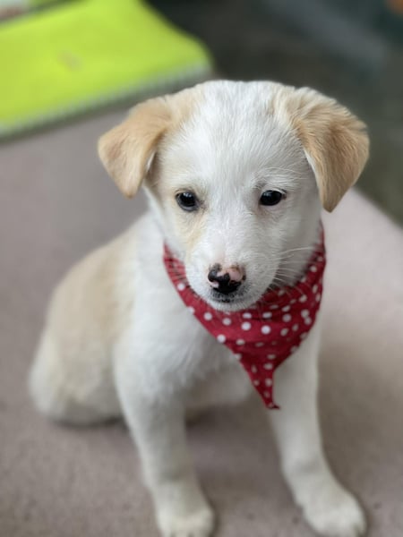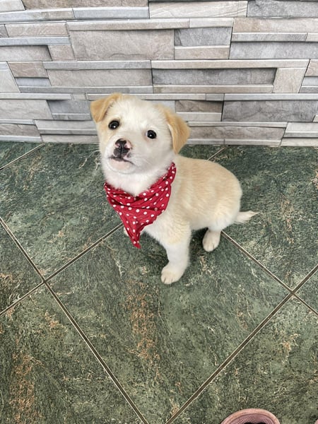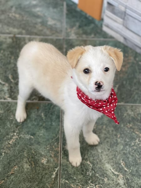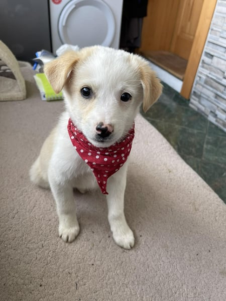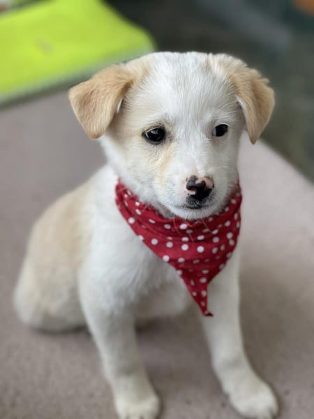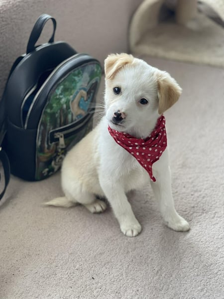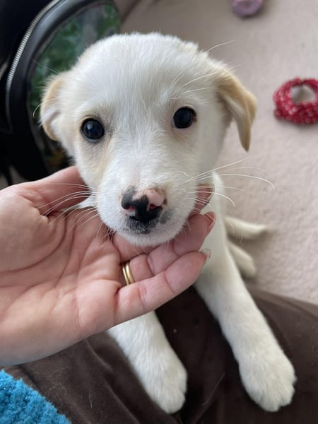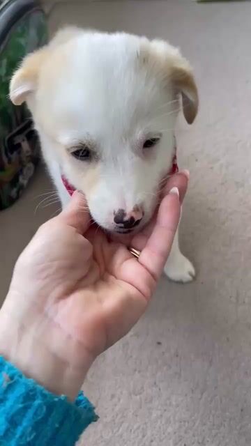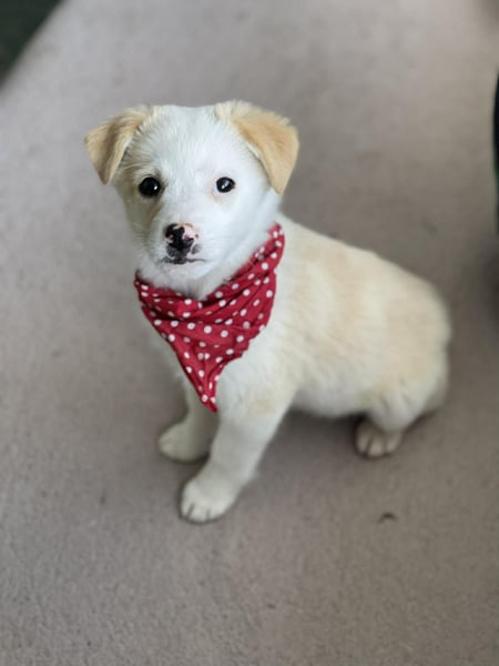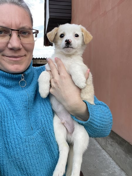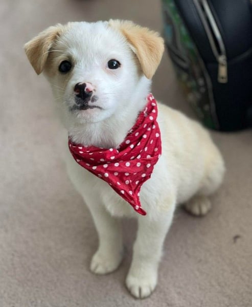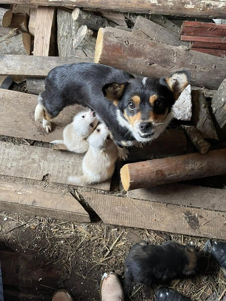Preston's Mama Pixie hatte wahrscheinlich nie einen Besitzer. Im Januar 2026 erschien sie plötzlich an einem verlassenen Hof, sie war hochschwanger. Einige Tage später brachte sie dort sechs Welpen zur Welt und versteckte sie unter einem Stapel Brennholz.