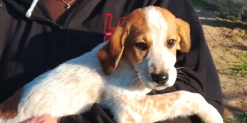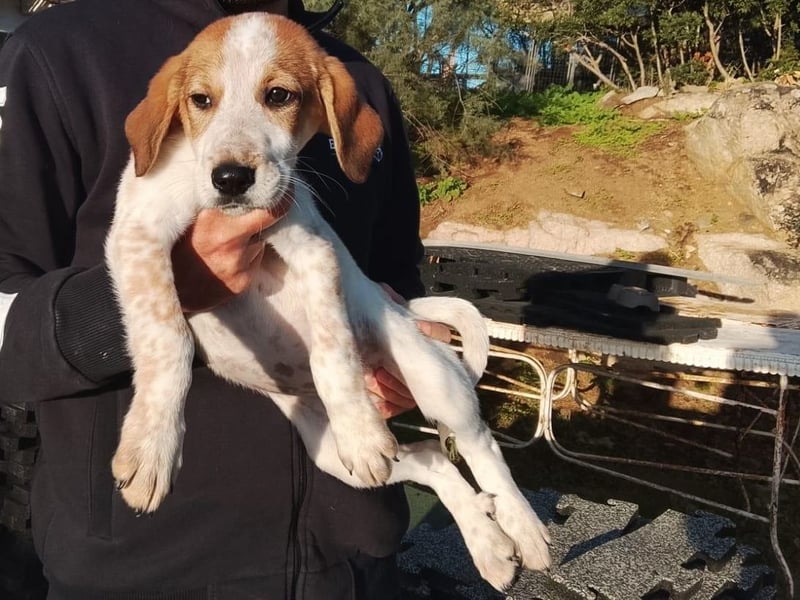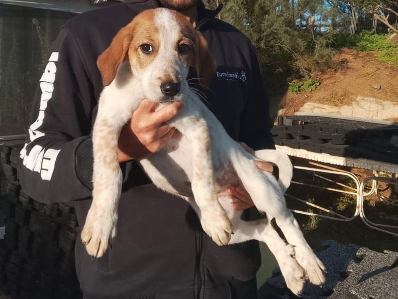 Bei der ersten Morgendämmerung, kaum dass man etwas sehen konnte, machte sich die Touristin auf die Suche und fand nach kurzer Zeit einen ca. 7 Wochen alten Welpen, der sich vor Angst und Sehnsucht nach seiner Mutter die Seele aus dem Leib schrie. Irgendjemand muss genau in dieser Nacht den hilflosen Welpen kaltherzig und gewissenlos ausgesetzt haben.