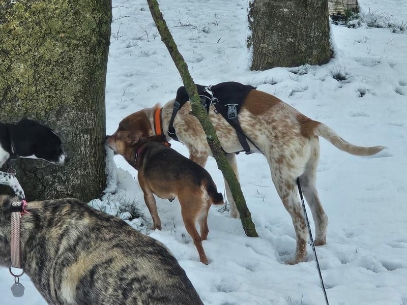 Als Jagdhundmischling wird sie sich über lange Spaziergänge in der Natur sehr freuen. Sobald die Basics zuverlässig sitzen, könnten wir uns auch Fährtenarbeit oder Mantrailing zur Auslastung vorstellen.