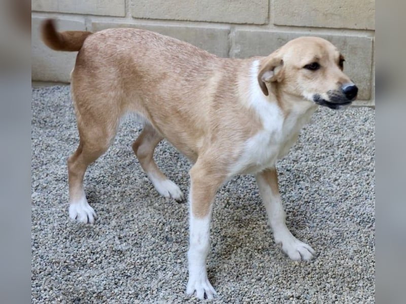 Nuria (4012) Mischlings-Mädel geboren am 10.03.2022, hat eine Schulterhöhe von 49 cm und wiegt derzeit 14 kg.