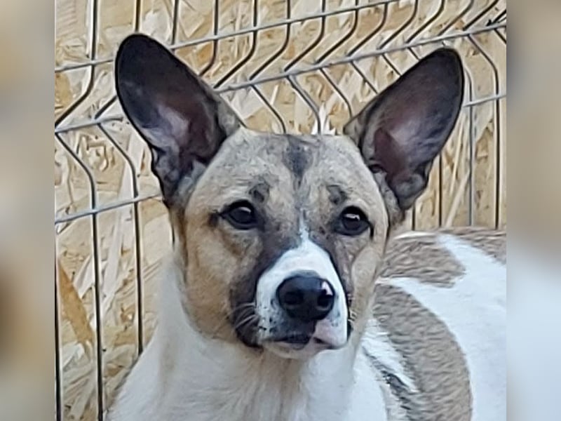 Dies ist die kleine freundliche Vlada. Unsere Tierschützerin fand sie mit einer anderen Hündin auf einem Feld, in der Nähe einer stark befahrenen Straße. Sie nahm beide Hündinnen bei sich auf und nun ist Vlada bereit für ihre Familie. Vlada ist verträglich mit anderen Hunden und auch mit Menschen ist sie offen und neugierig.