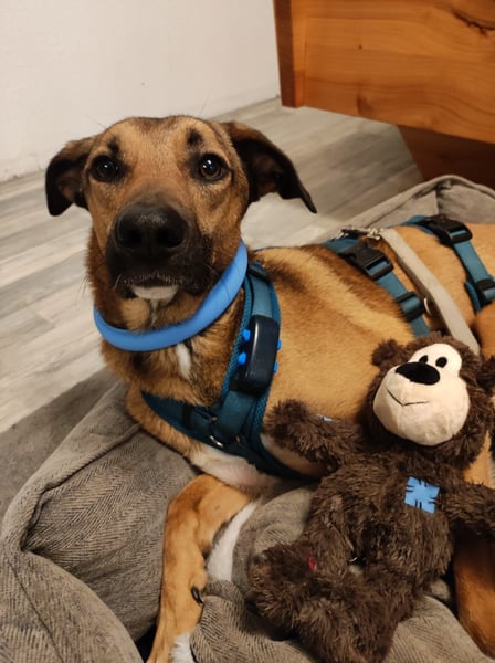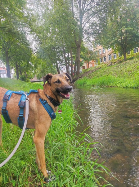 Menschen, denen er vertraut, begegnet er mit ganz viel Liebe. Fremde und neue Situationen machen ihn noch unsicher, aber er macht jeden Tag Fortschritte und zeigt, dass er mutiger werden kann.