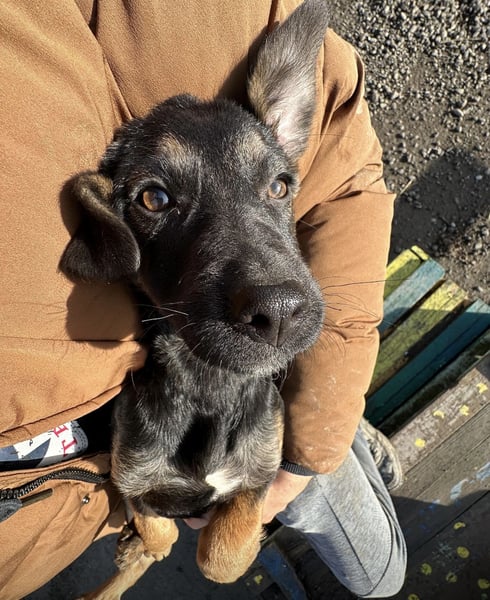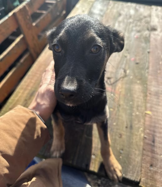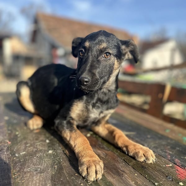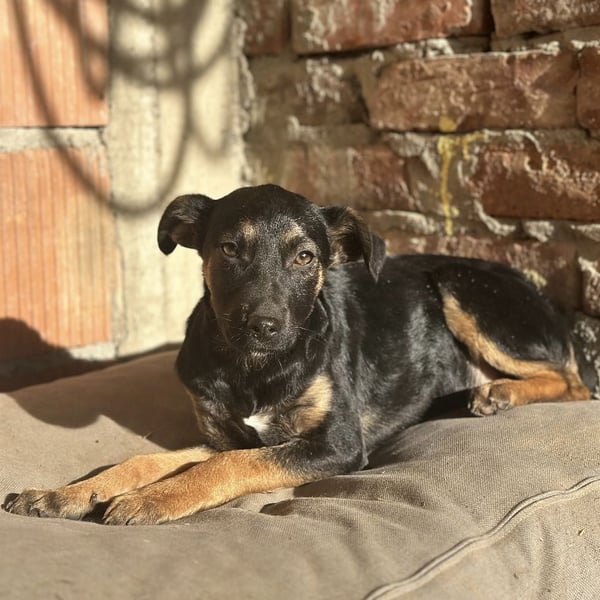 Lunai ist ein Mädchen, laut Tierarztschätzung ca. 3,5 Monate alt (geb. 25.08.2025), wiegt aktuell ca. 6 kg und ist etwa 35 cm groß. Vermutet wird, dass sie einmal mittelgroß wird – ungefähr kniehoch mit 17–20 kg. Sie hat keine Rute, nur einen kleinen Stummel, höchstwahrscheinlich so geboren.