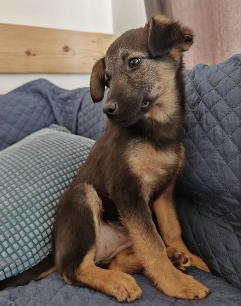 Luna ist ein Mädchen, sie ist ca. 5 Monate alt (geb. 26.07.2025), zur Zeit etwa 35 cm groß und wiegt 8-9 kg. Sie ist ein Querbeet Mischling und wird ausgewachsen mittelgroß, kniehoch.