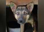 Romy kam zusammen mit ihren drei Welpen während der Kastrationskampagne im öffentlichen Tierheim in Onești im Mai 2024 zu uns ins Tierheim Ari Paws. Leider sind zwei Welpen nur wenige Tage danach verstorben.