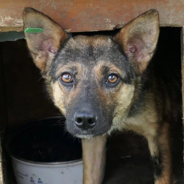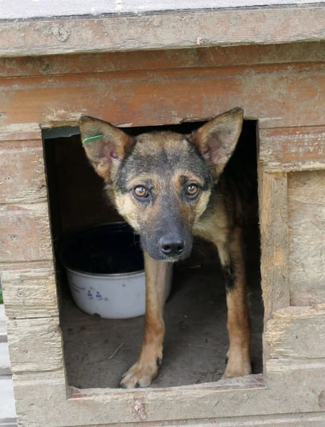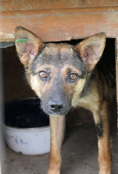 Romy ist eine zarte Hündin, die bisher noch kein Vertrauen zu uns Menschen fassen konnte. Sie ist ängstlich und lässt sich derzeit noch nicht anfassen. Nähert man sich ihr, versteckt sie sich schnell in ihrer Hütte. Romy braucht ein ruhiges und geduldiges Zuhause, in dem sie die Zeit bekommt, die sie benötigt, um sich in ihrem eigenen Tempo zu entwickeln.