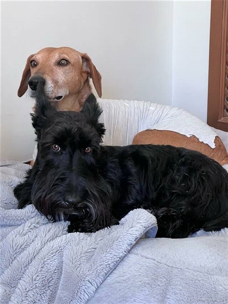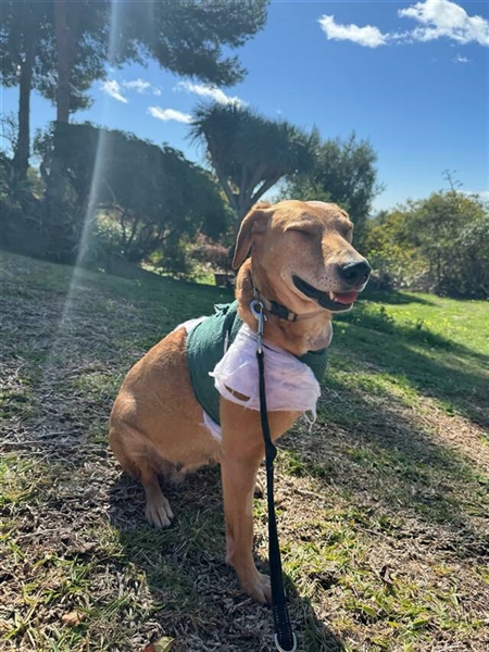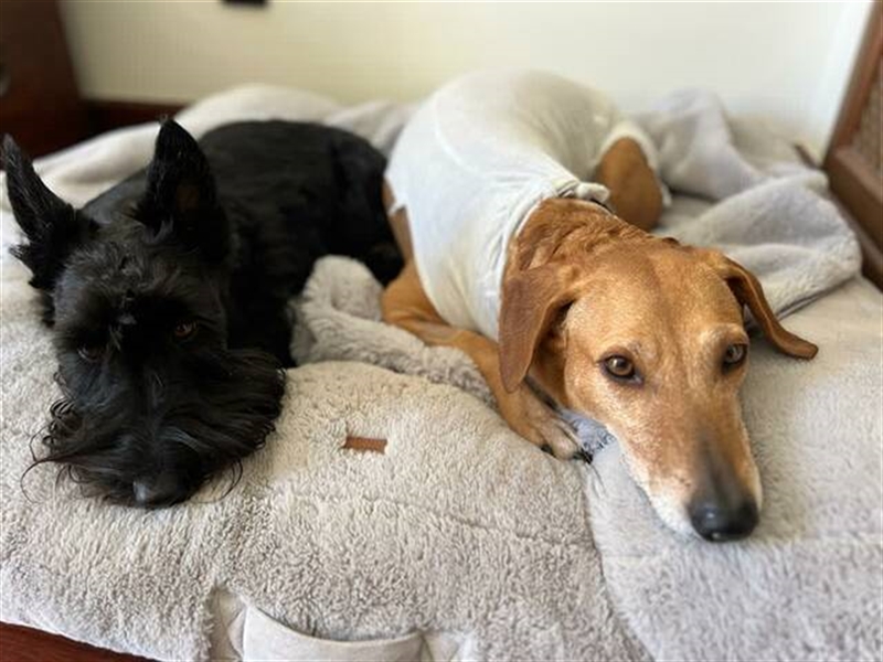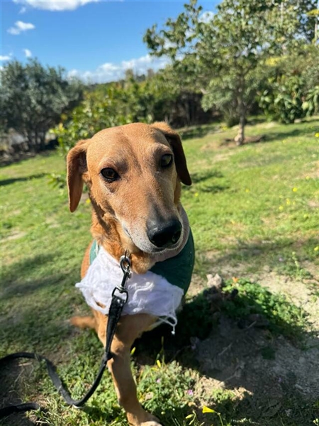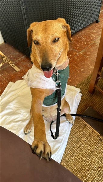 Canela wurde Anfang Januar 2024 auf der Straße gefunden, nachdem sie von einem Auto angefahren wurde. Mit schweren Verletzungen kam sie ins Tierheim Triple A Marbella, Spanien. Ihr linkes Schulterblatt war gebrochen und die Schädigungen der Nerven waren zu schwerwiegend, um das Bein noch retten zu können. Somit wurde es amputiert.