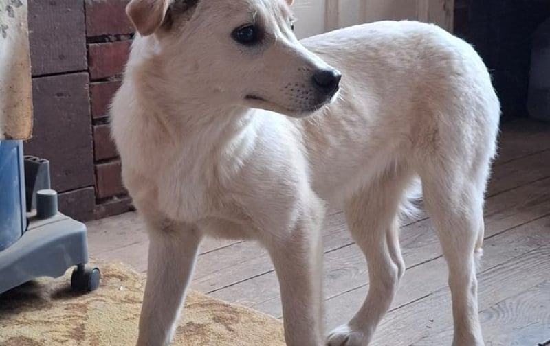 ihr helles, cremefarbenes Fell, leicht strubbelig vom nächsten Abenteuer, die wachen Augen und ihre süßen Knicköhrchen – man sieht ihr einfach an, dass sie voller Tatendrang steckt.