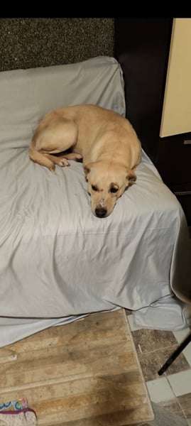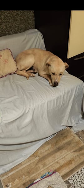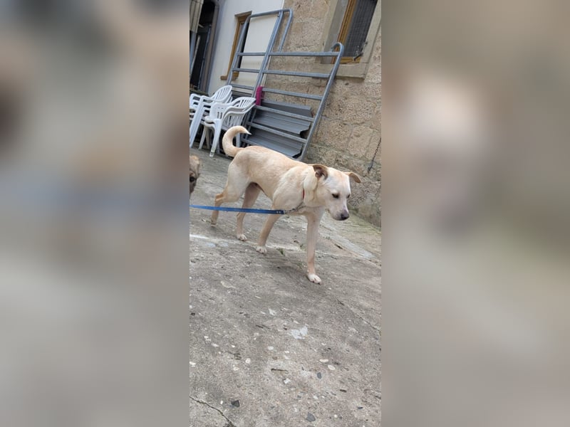 Sky, die cremefarbene, 48 cm große Labrador-Mischlingshündin, wurde gemeinsam mit ihren Welpen auf der Straße in Rumänien entdeckt. Für eine Hundemama bedeutet das ständige Sorge: Futter suchen, die Kleinen schützen und immer auf der Hut sein. Zum Glück wurden sie von Tierschützern gefunden und in Sicherheit gebracht.