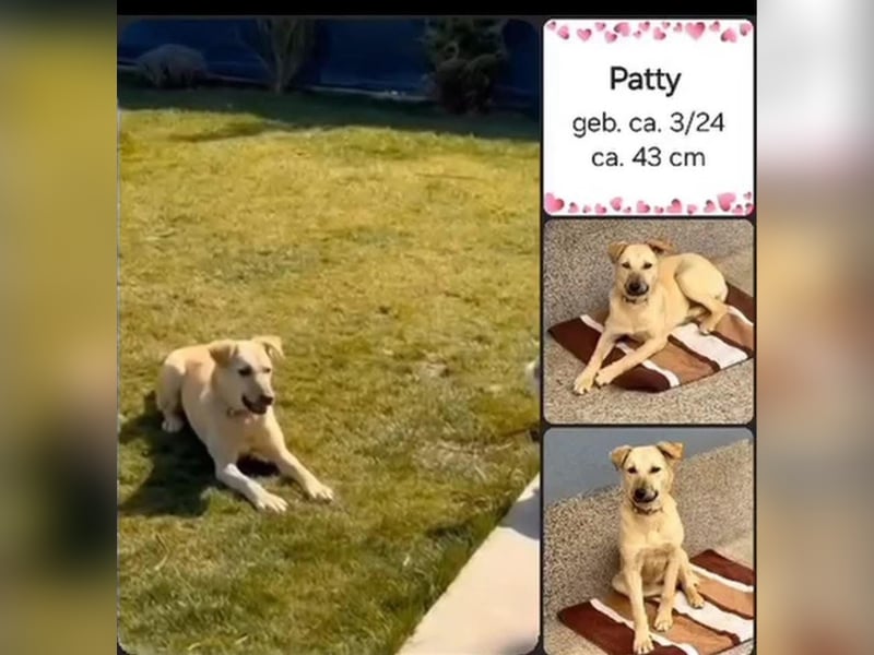 Patty, geboren im März 2024, ist eine etwa 43–45 cm große Junghündin, die dringend ihr eigenes Zuhause sucht.
