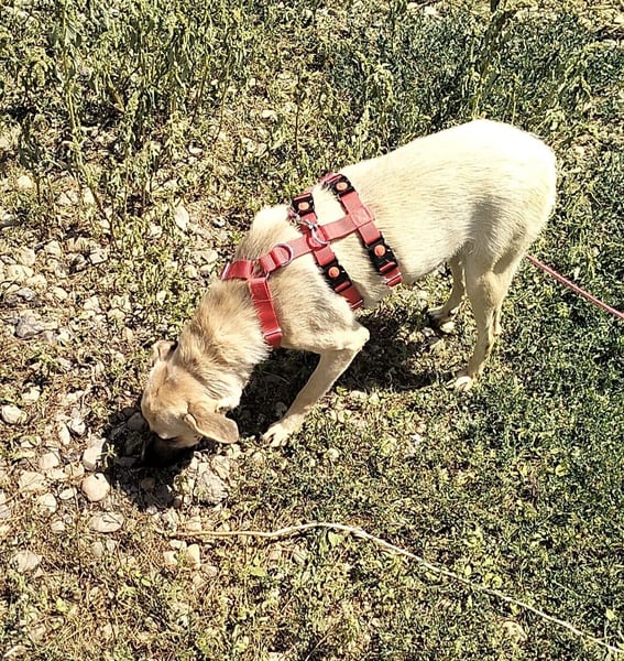 Sie wurde nicht kastriert, bekam unerwünschten Nachwuchs und wurde schließlich zusammen mit ihren beiden Welpen auf/ an einer Landstraße ausgesetzt.