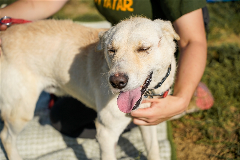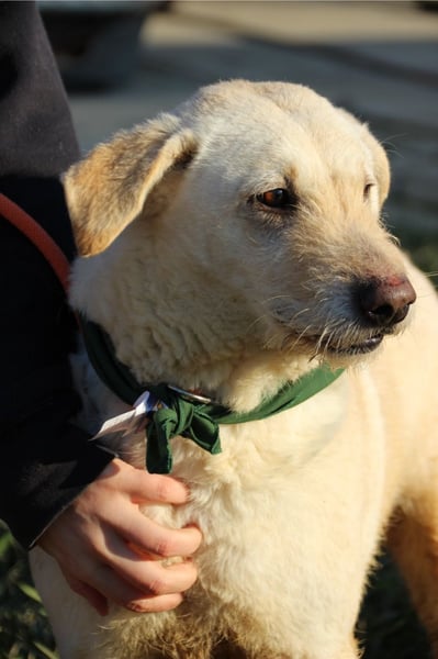 Haribo konnte schon wieder das Team mit seinem Charme überzeugen, und man merkt wie Menschenbezogen er ist. Nach seinen 7 Jahren an der Kette, wünschen wir uns nichts mehr, als das Haribo auch nochmal das Leben in einer Familie kennen lernen darf. Er überzeugt mit seinem Charme und seinem bezaubernden Äußeren: Eine cremefarbene Hülle, die zum kuscheln einlädt! Tolle Familie gesucht.