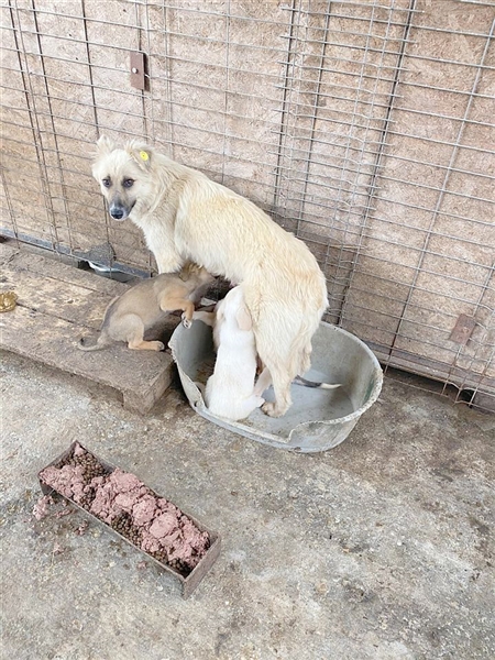 Gemeinsam mit ihren Babys. Trotz Erstversorgung durch unsere Tierschützer sind alle Welpen gestorben.