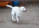 Man sieht aber noch deutlich eine Unsicherheit in Sunnys Verhalten gegenüber Menschen. Sie zeigt sich im ganzen eher devot, liegt schnell auf dem Rücken oder geht, wenn ihr etwas nicht ganz geheuer ist, ins „Fideln“ (herumalbern), um die Situation aufzulösen. Streicheleinheiten findet Sunny gut und hat sich auch bein uns Besuchern angelehnt und Liebkosungen genossen.