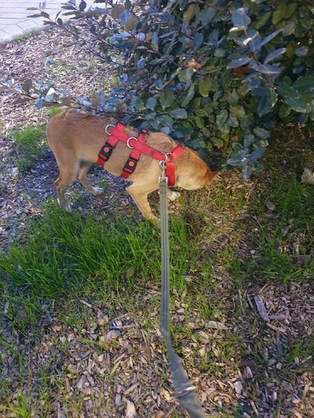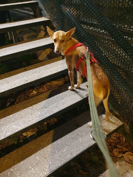 Oda ist draußen manchmal noch unsicher. Das liegt auch daran, dass sie die Welt rein visuell wahrnimmt. Mit etwas Übung, Geduld und Liebe wird sie aber schnell souveräner.