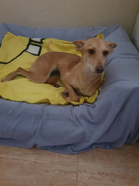 Oda lebt seit November 2025 im Tierheim Albolote, nachdem sie alleine in der Nähe eines Dorfs gefunden wurde. Arbeiter einer Autofirma kümmerten sich eine Zeit lang um sie und teilten sogar ihre Pausenbrote mit ihr, doch eine feste Bezugsperson hatte sie nie. Oda war weder gechippt noch gekennzeichnet – so kam sie schließlich ins Tierheim. Im Februar hatte sie das Glück und durfte auf eine unserer rar gesäten Pflegestellen in Deutschland umziehen. Hoffentlich wird sie in Deutschland nun gesehen und findet ein Zuhause in einer liebevollen Familie.