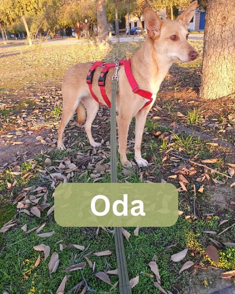 Oda ist gehörlos, was sie aber nicht in ihrem Alltag einschränkt – im Gegenteil: Sie ist gelassen, da sie auf laute Geräusche oder Verkehrslärm nicht reagiert. Kommunikation über Blickkontakt oder einfache Handzeichen funktioniert gut und lässt sich weiter ausbauen.