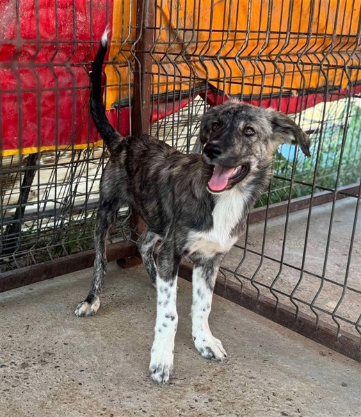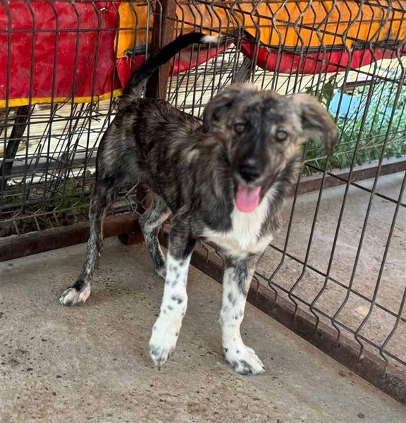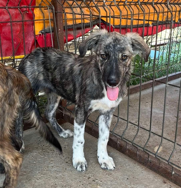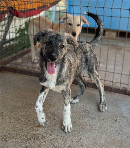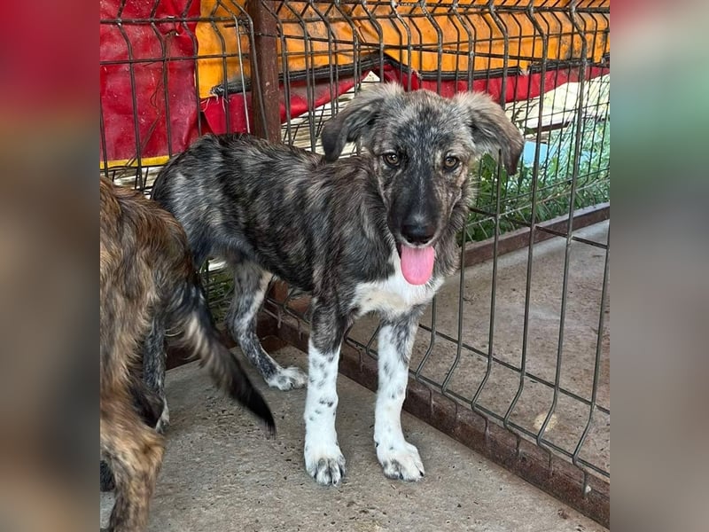 Dipsy wurde mit drei weiteren Geschwistern ohne Hundemama auf der Straße gefunden und ins Tierheim gebracht, wo sie nun auf ihre Familien wartet. Das kleine Hundemädchen ist anfangs schüchtern und meidet Berührungen durch fremde Menschen. Kennt sie die Menschen, ist sie offen, freundlich und altersentsprechend verspielt. Sie versteht sich gut mit allen Hunden und verbringt den Tierheimalltag gerne beim Toben und Spielen mit ihren Geschwistern.