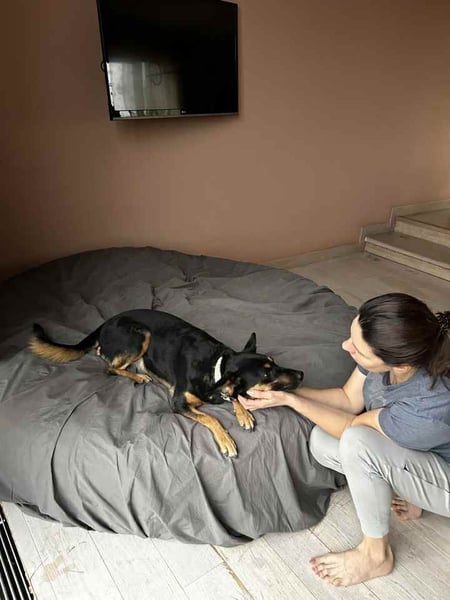 Michelle ist sehr verschmust und menschenbezogen. Sie läuft wunderbar an der Leine und ist stubenrein. Zu Hause ist sie ruhig, bleibt auch problemlos alleine und macht nichts kaputt. Anfangs ist sie allerdings gestresst. In ihrem neuen Zuhause wird sie anfangs Zeit brauchen, um sich einzuleben. Sobald sie sich eingelebt hat, wird sie zum Clown. Sie liebt es zu spielen und herumzualbern. Ihren Platz im Haus hat sie auch schon gefunden – ihr Lieblingssessel ist heilig. Mit anderen Hunden ist sie wählerisch: sie braucht Zeit, um Vertrauen zu fassen. Bei der ersten Begegnung kann sie manchmal unsicher und abweisend reagieren, wurde aber noch nie in eine Beißerei verwickelt. Mit Katzen kommt sie gut zurecht, in der Tierklinik hat sie sich ruhig und freundlich verhalten.