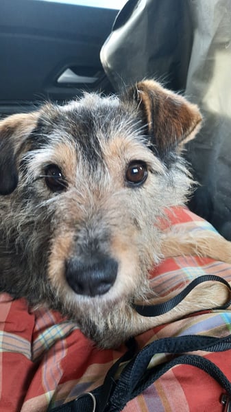 Auch Autofahren ist für Elliot kein Problem. Er springt freiwillig auf den Rücksitz, wo er gesichert und geduldig mitfährt.