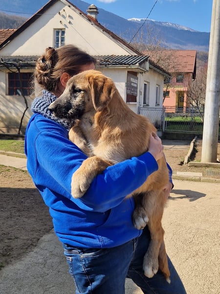 Fiona gehört zu den drei Schwestern, die unter harten Bedingungen draußen in der Wildnis Bosniens, im September 2025, zur Welt kamen. Gemeinsam mit Leni und Nova musste sie ihre ersten Wochen ohne Schutz verbringen – bis Tierschützer sie fanden und in Sicherheit brachten.