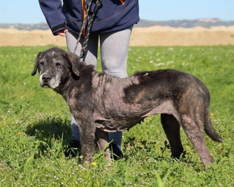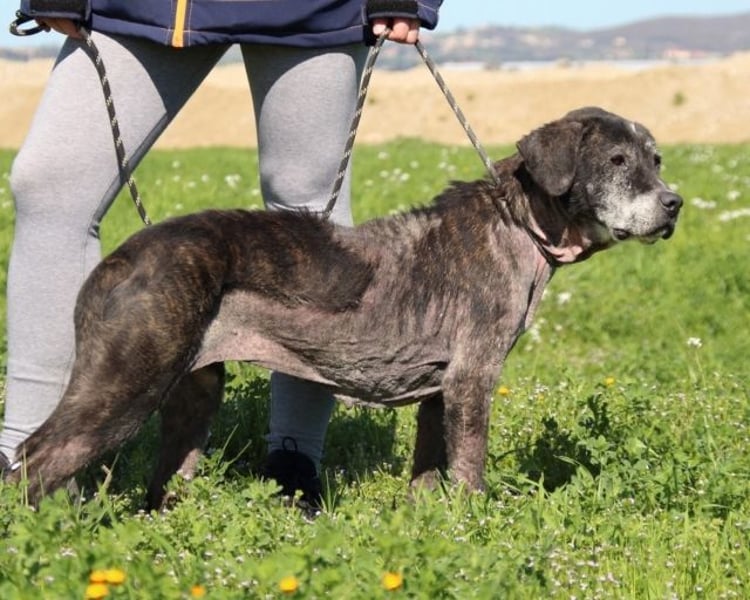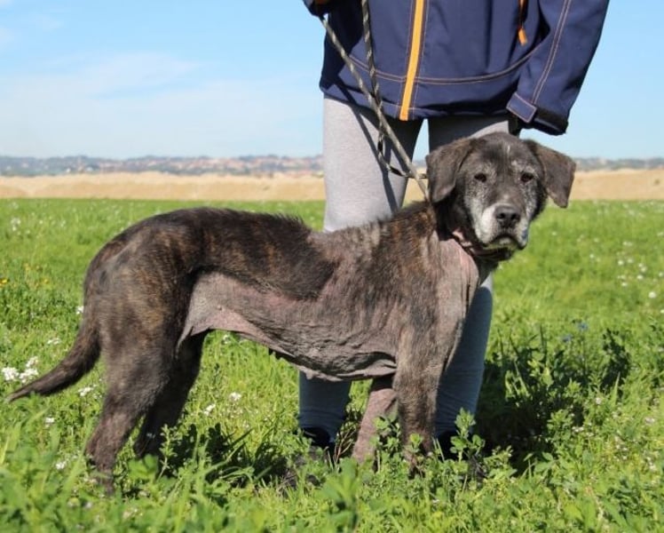 Als Gweni im letzten Jahr zu uns kam, war sie gezeichnet von den schrecklichen Zuständen in den Canili. Sie war abgemagert und hatte kahle, entzündliche Stellen am ganzen Körper. Anfangs dachten wir an eine Futtermittelallergie und so bekam sie einige Zeit Spezialfutter und eine dermatologische Behandlung. Die Behandlung tut ihr gut. Sie wird regelmäßig gebadet und bekommt die Ohren gereinigt. Die Prozeduren lässt sie brav über sich ergehen. Sie ist eine 1A-Patientin. Das sagen nicht nur die Tierschützer, sondern auch die Tierärztin, die laut Gweni übrigens die weltbesten Leckerchen hat. Die Vermutung der Futtermittelallergie hat sich in der Zwischenzeit nicht bestätigt. Dennoch hilft das Spezialfutter ihrer empfindlichen Haut, die sich durch die dermatologische Behandlung und den Umzug in unseren Sicheren Hafen sichtbar verbessert. Das Fell ist großräumig nachgewachsen. Auffällig ist allerdings, dass sie unter Stress Rückschritte macht. In den letzten Wochen wurde viele Hunde adoptiert und neue Bewohner sind nachgerückt. Das führt natürlich zu Unruhe und noch stärkerer Lautstärke im Sicheren Hafen. Genau das ist es, was unserer Gweni nicht guttut. Aus diesem Grund machen wir unsere tapfere Gweni zu einem Notfall.